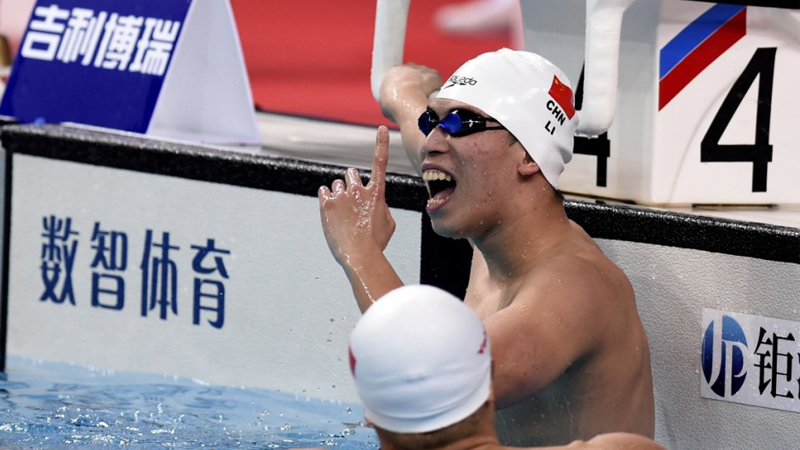 北京时间4月9日晚,在广东佛山进行的2016年全国游泳冠军赛结束了第七比赛日晚上四个项目决赛和一个项目半决赛争夺,浙江选手李朱濠以51秒24获得男子100米蝶泳冠军,平了周嘉威保持的全国纪录,并且超过自己保持的世青纪录。广东选手余贺新以22秒16的个人最好成绩获得男子50米自由泳冠军,浙江选手柳雅欣获得女子200米仰泳冠军,八一队张雨涵获得女子800米自由泳冠军。上海选手陈欣怡排名女子50米自由泳半决赛第一,唐奕名列第15无缘决赛。 男子100米蝶泳决赛,浙江选手李朱濠出发一般,在前半程没能甩开张麒斌和周嘉威,只是稍稍领先。后半程李朱濠开始展现状态,拉开了和两位选手之间的距离,最后他以51秒24的成绩获得冠军,平了周嘉威保持的全国纪录,并超过了李朱濠创造的51秒33的世青纪录。这个成绩放在去年世锦赛上可以获得第五名。张麒斌以52秒34获得亚军,并达到了52秒36的奥运A标。33岁的广东老将周嘉威以52秒44获得第三。 男子50米自由泳决赛,广东选手余贺新继续其在本届比赛的上佳状态,他以22秒16获得冠军,再次刷新自己在半决赛游出的22秒19的个人最好成绩,足以杀入去年世锦赛男子50自半决赛,上海选手施扬以22秒40获得亚军,河北选手郭玮以22秒46获得第三。 女子200米仰泳决赛,浙江选手柳雅欣以2分10秒01获得冠军,这个成绩比她在去年世游锦赛游出的2分11秒75好了不少,而且可以杀入半决赛。湖北选手陈洁以2分10秒29获得亚军,北京选手程海花以2分11秒73获得第三。 女子800米自由泳决赛,前六名选手全部达到8分33秒97的奥运A标。八一队的张雨涵以8分24秒04获得冠军,亚洲纪录创造者、山东选手辛鑫以8分25秒16获得亚军,辽宁队侯雅雯以8分26秒76获得第三。 女子50米自由泳半决赛举行时,宁泽涛突然来到场边,向观众挥手鞠躬,这也引发场内一片骚动。上海选手陈欣怡以24秒70排名第一,广东选手刘湘以24秒84列第二,浙江选手朱梦惠以25秒19列第三。上海选手陆滢在她这个副项里以25秒55列第八,正好进入决赛,上海自由泳名将唐奕以25秒87排第15位。 (威猛)[详情]